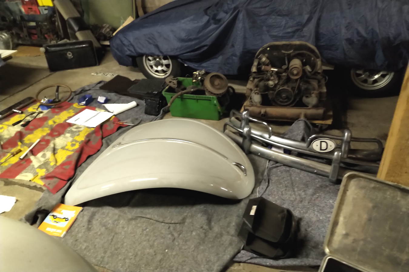 Wir konnten damals einen Käfer Rahmen zu einem sehr günstigen Preis erwerben. Es entsteht ein kompletter Neuaufbau des Käfers. Seit 3 Jahren sammeln wir nun die nötigen Teile für den Rest des Wiederaufbaus.