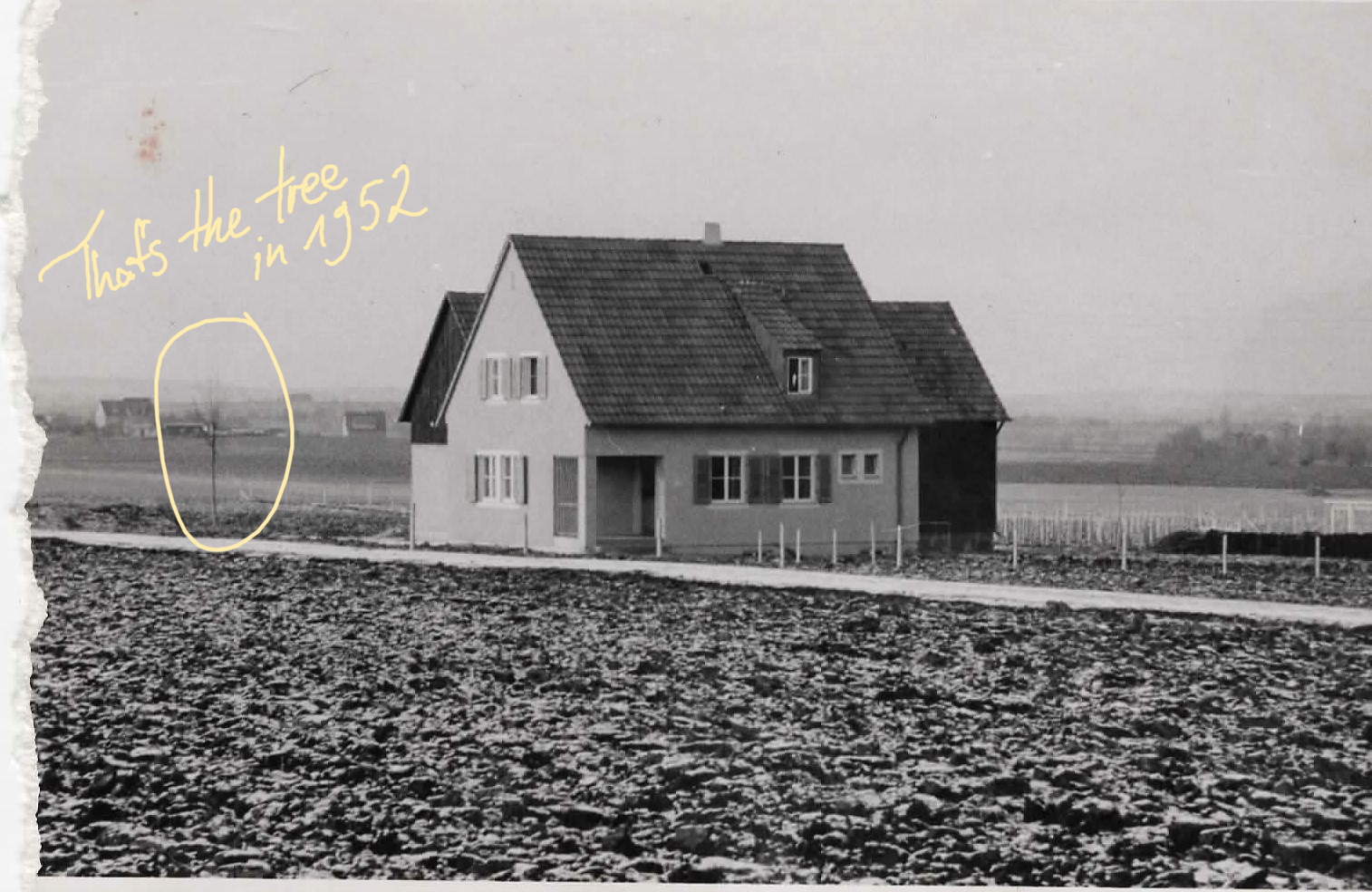 This beautiful small-leaved lime is now almost 70 years old and thus one of the largest and oldest trees in Stuttgart Giebel, outside the forest. This was planted by Therese’s grandparents.